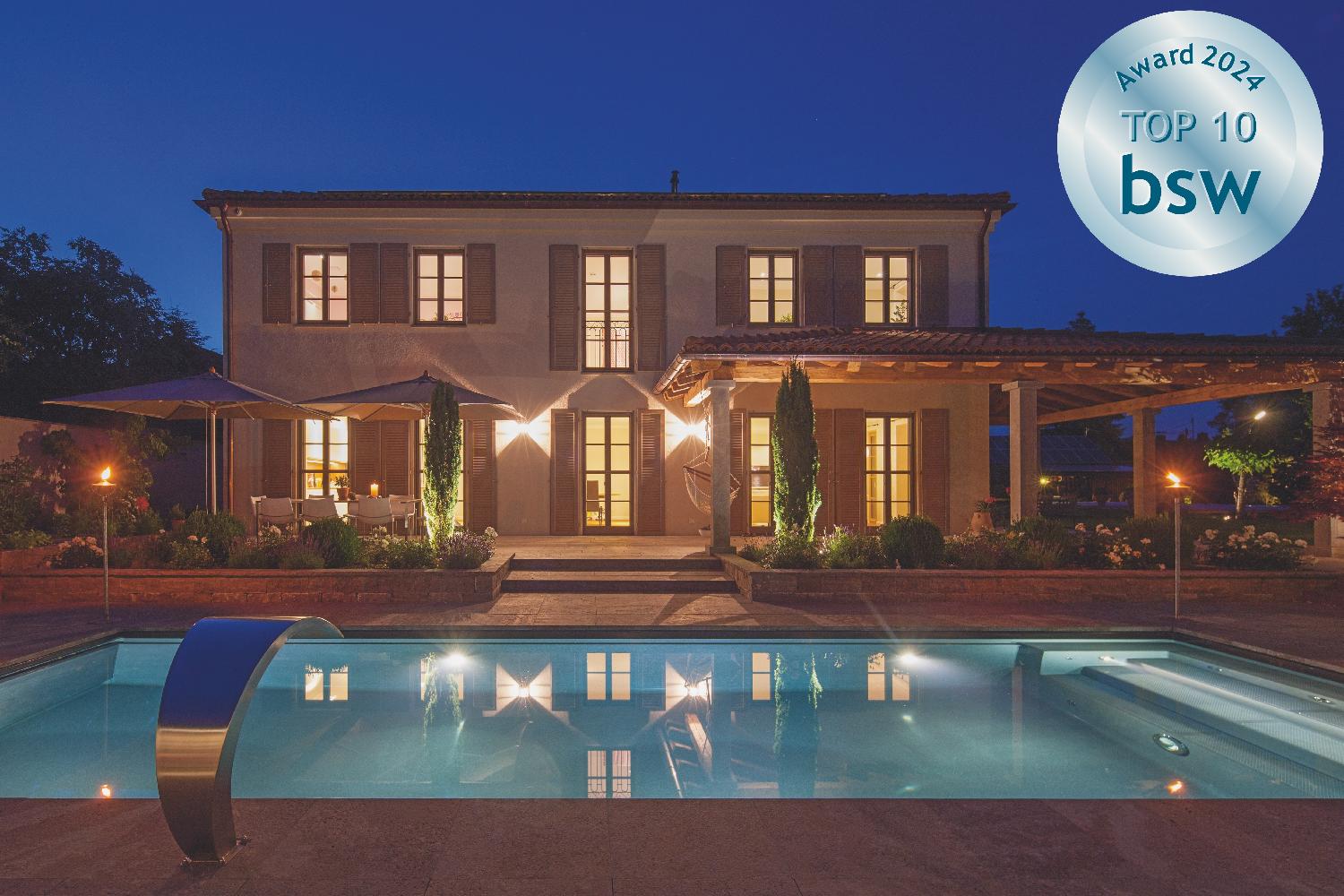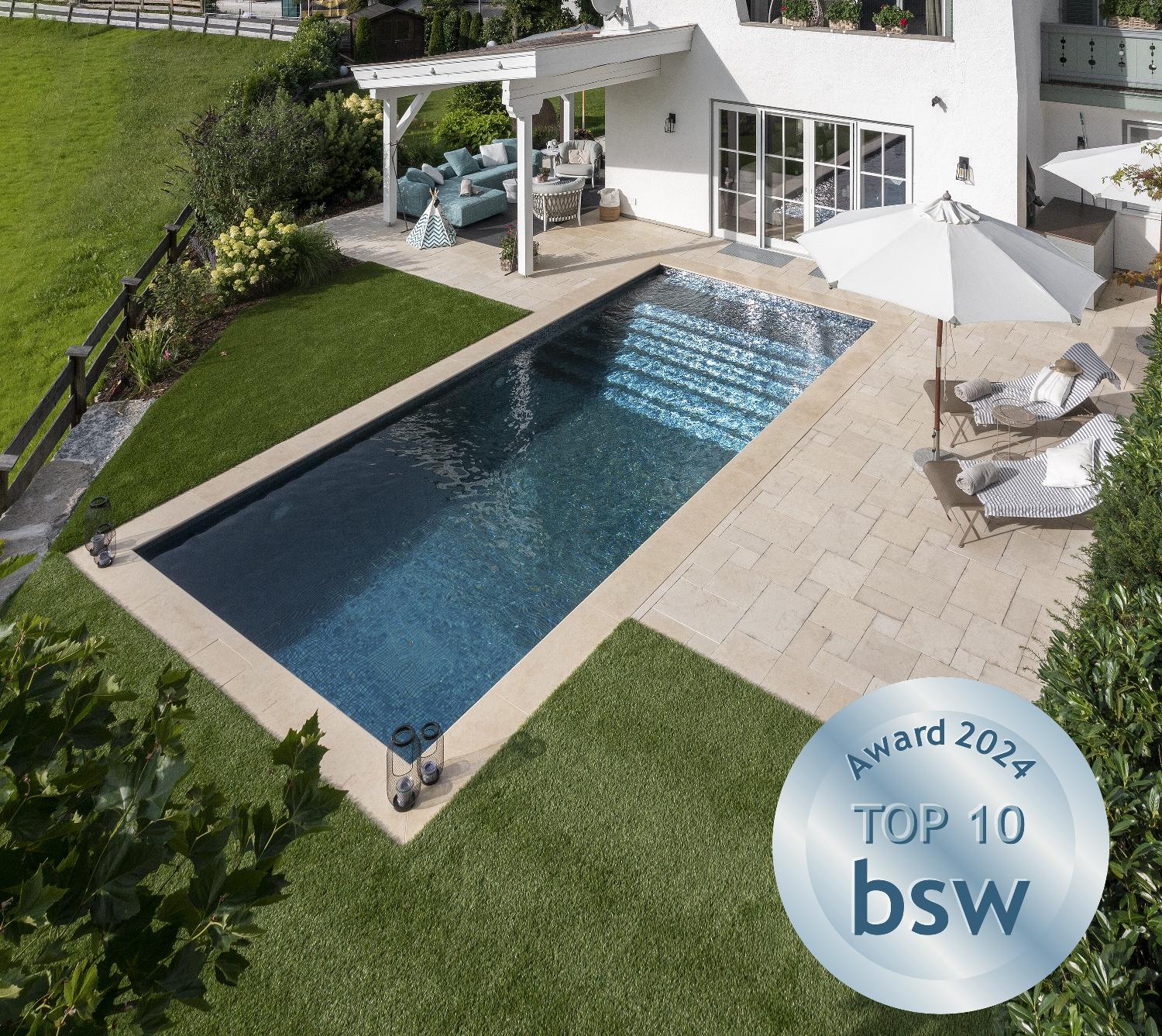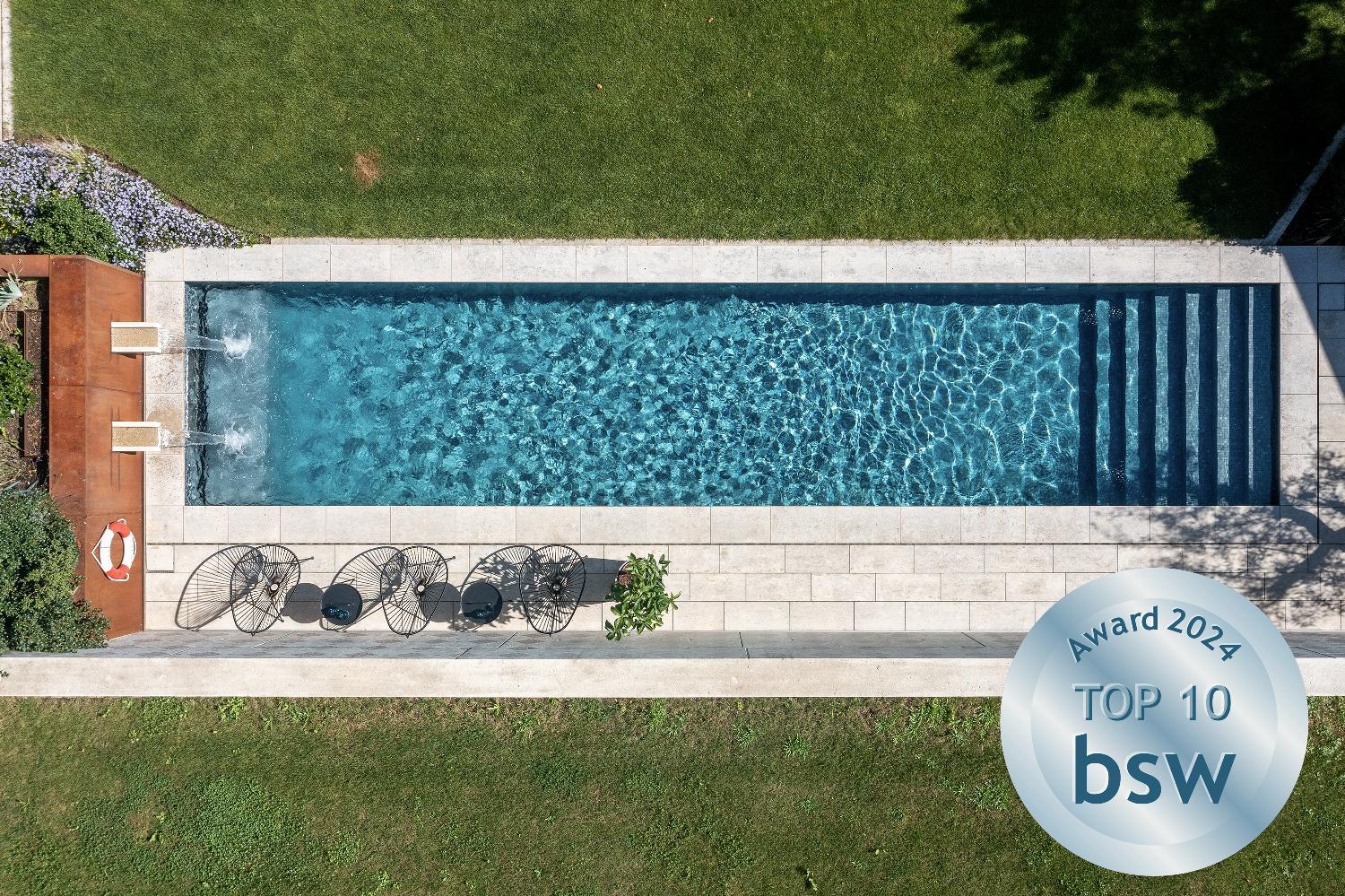 Der bsw-Award wird jedes Jahr vom Bundesverband Schwimmbad & Wellness e.V. (bsw) verliehen. Dabei bestimmt eine Fachjury - ergänzt durch Verbraucher - die schönsten Pools des zurückliegenden Jahres. Bewertet werden technische, ästhetische, handwerkliche und gestalterische Aspekte.
